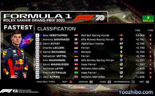 [腾讯] 2020F1萨基尔大奖赛第三次练习赛 车手位置