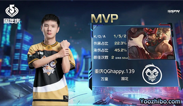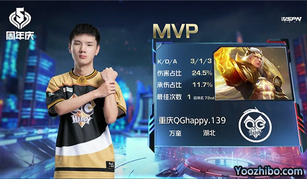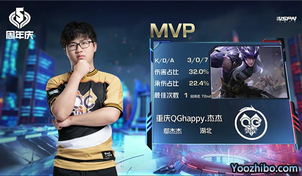 重庆QGhappy选用:马超 橘右京 不知火舞 项羽 孙膑