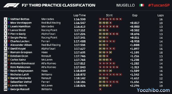 2020F1托斯卡纳站FP3成绩表: