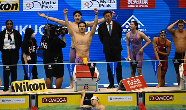 24直播网讯07月27日福冈世锦赛,中国队拿下男女4X100混合泳接力金牌,徐嘉余、张雨霏、覃海洋和程玉洁完美发挥,最终3分38秒57斩获冠军,力压美国和澳大利亚队。比赛结束之后,队员们都很激动,覃海洋低调的表示自己此前游了一枪,这次没有发挥出最好的状态。程玉洁则表示自己害怕掉链子,但还是顶住了压力。第一棒的徐嘉余表示自己等了这么多年,终于等来了最强的队友,这次是最富裕的一仗。