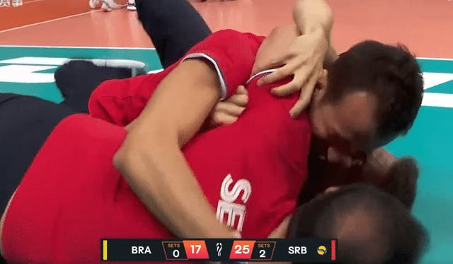 塞尔维亚在这场决赛前两局打得并不轻松。首局,双方一度打成24平。不过关键时刻,博斯科维奇进攻得手加上加比失误,塞尔维亚26-24拿下首局。第二局,巴西在落后的情况下一度追到22平。但关键时刻,塞尔维亚连得3分。连输两局后,巴西失去斗志,第三局17-25溃败。最终,塞尔维亚3-0击败巴西,夺得冠军。
