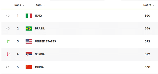 值得一提的是,在最新的世界排名上,世锦赛4强也恰好排名前四位,意大利排名第一,巴西排名第二,美国第三,塞尔维亚第四。可以说,这届世锦赛4强的含金量十足。由于本届世锦赛的奇特赛制,半决赛的两组对决,在之前的小组赛已经上演过,也能从中窥出一些端倪。