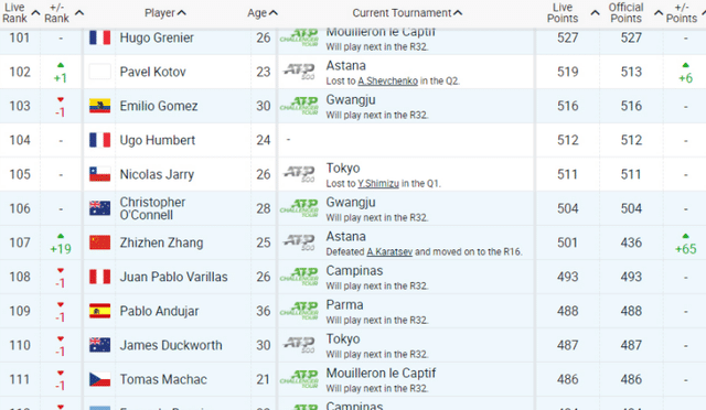 当然,对于张之臻来说,输给卢布列夫并不丢人。反而是此次阿斯塔纳站,张之臻收获颇丰。资格赛两场胜利拿到的20个积分,加上正赛首轮获胜拿到的45个积分,张之臻的即时排名已经升至第107位,继续刷新中国男网的历史最佳纪录。接下来,张之臻有机会继续创造辉煌——冲击TOP100!