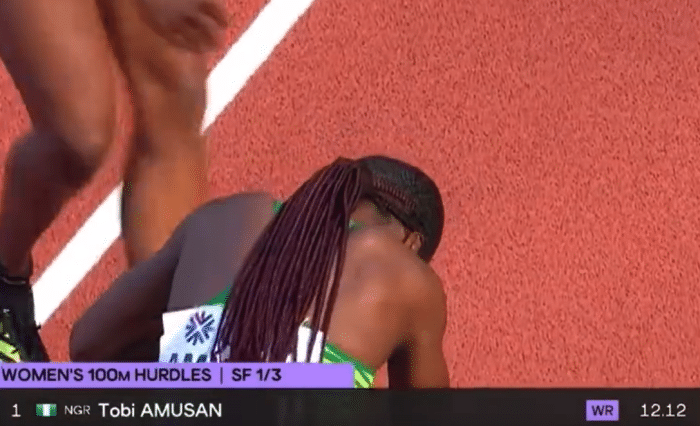 而来自尼日利亚的阿姆桑保持着12秒41的非洲纪录,年仅25岁的她,实力同样不容小觑。而最终的结果也证明,阿姆桑已经具世界最顶尖的实力。这场半决赛,阿姆桑和世界纪录保持者哈里森被分在第一小组。对于阿姆桑来说,或许她的首要目标就是拿到前二,直接晋级决赛。但最终,阿姆桑狂飙出12秒12的世界纪录,同组的哈里森12秒27也已经极为出色,但在新的世界纪录面前,黯然失色。