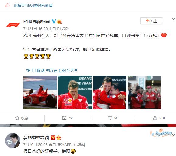 林志颖车祸前点赞舒马赫报道,这是根据林志颖的社交媒体上显示,他在昨天点赞了传奇车王舒马赫20年前的今天加冕五冠王伟业的新闻。