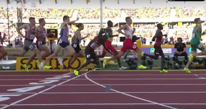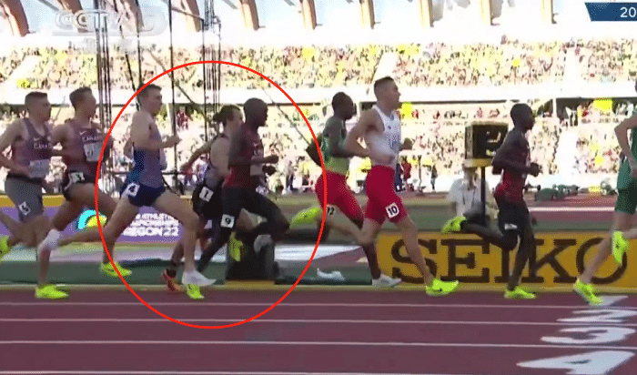 24直播网07月18日讯 ,美国俄勒冈田径世锦赛出现了令人非常吃惊的一幕!在男子1500米半决赛中,乌干达选手塔基在第一圈结束时遭遇意外,他被身后的英国选手怀特曼从身后直接推倒倒在跑道上。虽然他随后起身,但最终还是排名半决赛垫底,无缘决赛。目前,组委会并没有对这一事件做出反应。