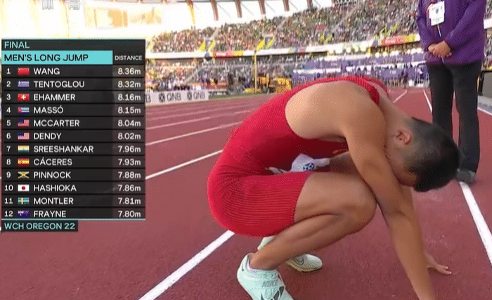 赛后,王嘉男身披国旗,而组委会也直接给他挂上了金牌!王嘉男这枚金牌创造了诸多历史!第一,他成为中国田径史上,第一位拿到世锦赛田赛金牌的男子运动员。第二,他成为刘翔和王浩之后,中国第三位世锦赛男子冠军。第三,他成为中国田径史上首位跳远世界冠军。第四,他帮助中国拿到本届世锦赛的首枚金牌!