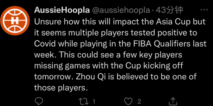外媒表示还不确定疫情会对于本届亚洲杯有多大的影响,但是开赛前已经有多名球员确诊,几个重要的球员将会错过亚洲杯开赛阶段,这其中就包括中国男篮的球员周琦,他就在其中。