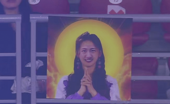 这场比赛场下和场外有很多搞笑的元素,丁霞没有首发,不过她作为中国女排资历最深的运动员,人气还是相当高的,比赛期间可以看到,现场有球迷拿着一个助威的海报,上面是著名的“杨超越保佑”,但球迷们将杨超越的头像换成了丁霞,确实非常有趣。