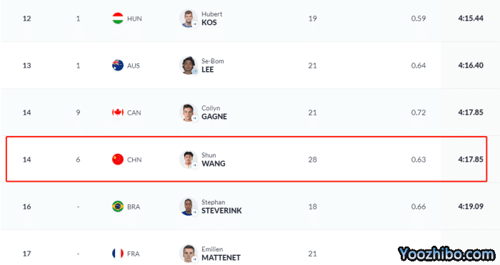 与汪顺同组的三名选手发挥非常出色,法国选手和两名美国选手排名预赛前三晋级决赛。而日本名将濑户大也的发挥非常不错,顺利晋级决赛。另外还有一名匈牙利选手,一名日本选手和2名澳大利亚选手晋级决赛。