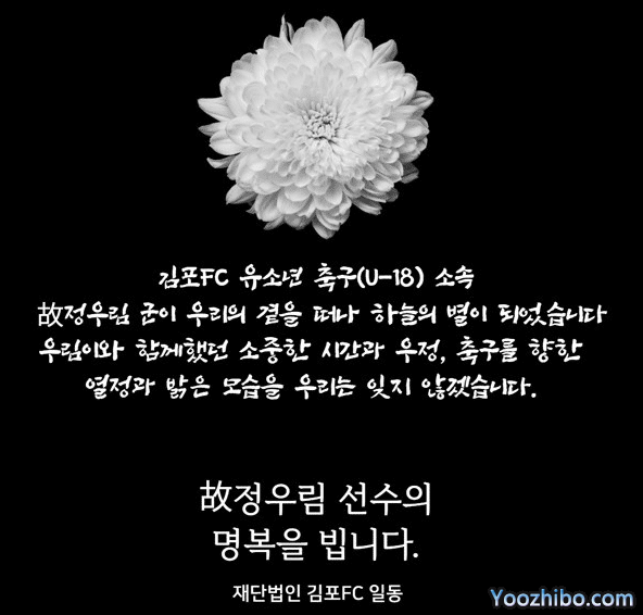 24直播网05月03日讯 ,韩国足坛传来噩耗,金浦俱乐部U18梯队一名球员因为霸凌而自杀,金浦俱乐部官方表示哀悼,韩媒也纷纷跟进报道。根据官方消息称金浦俱乐部将会在4日的主场比赛中为这名小球员举办悼念活动。