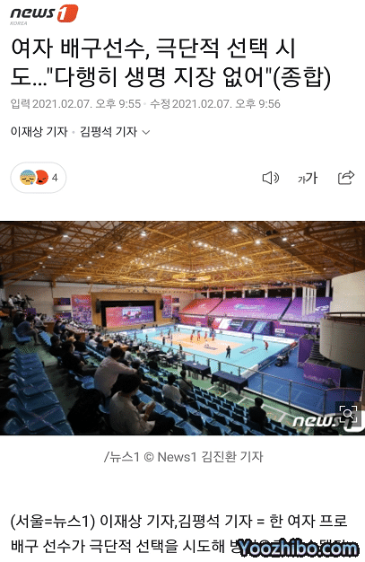 韩国女排俱乐部的兴国生命队球员在宿舍内自杀被发现,虽然官方解释却是球员腹泻,但《韩联社》等媒体抨击俱乐部瞒报事实,多家韩媒跟进,称称这名球员就是因为在队内被欺负,所以才走上了一条极端的道路。