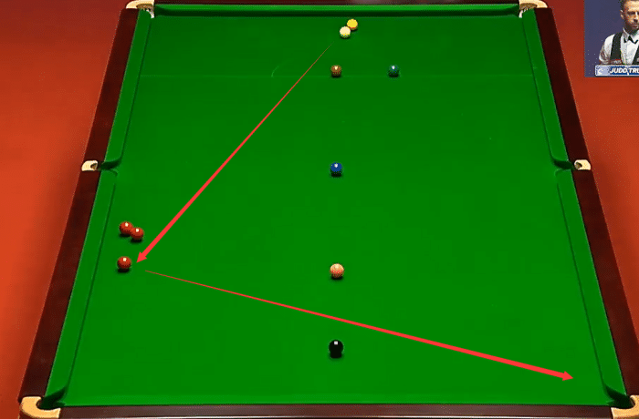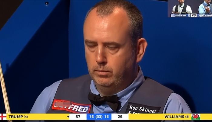 直接回到这场半决赛决胜局。此前,马克威廉姆斯在1-7/5-11落后的情况下,一度16-15反超拿到赛点。特鲁姆普顽强追回,拖入33局17胜制的决胜局。而决胜局开始不久,特鲁姆普做出精彩斯诺克防守。马克威廉姆斯在思考三分钟之后,没有想出应对方法,只得选择大力冲散红球。
