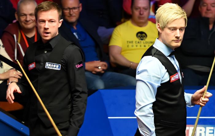 24直播网04月25日讯 ,斯诺克世锦赛1/8决赛继续进行。前世锦赛冠军、四巨头之一的尼尔·罗伯逊,爆冷7-9落后于利索夫斯基。鉴于本届赛事此前没有人在两个阶段落后的情况下翻盘,罗伯逊恐怕会遭遇出局的厄运。另外一场比赛,特鲁姆普10-6领先麦克吉尔,晋级在望。