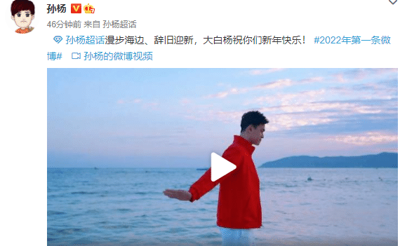 到了1月1日,孙杨晒出了自己在海边的动态,同时送上了暖心祝福:“漫步海边、辞旧迎新,大白杨祝你们新年快乐!”