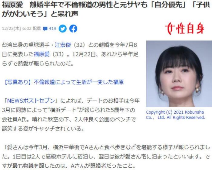 福原爱婚内出轨实锤!拆散一个家庭,日本网友怒斥:制造不幸的人