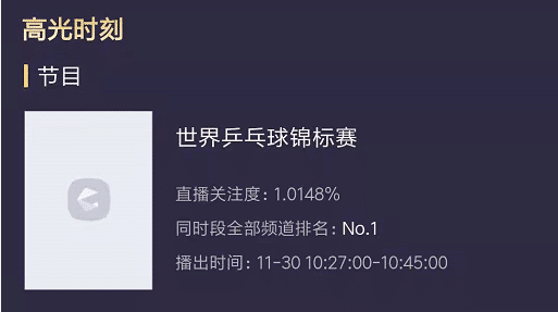 除了登上热搜榜之外,因为世乒赛的收官日,所以外界关注度很高,这点从收视率上就可以体现出来,女单决赛和男单决赛的收视率都突破了1%,要知道的是今天还是工作日的上午,能够有这样的数据是相当不错的。同时世乒赛两场决赛的收视率,在同时间段,是全国第一。
