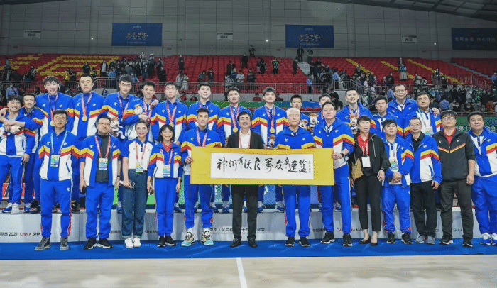 24直播网9月27日讯 全运会U22男篮决赛是压轴项目之一,最终在辽粤巅峰对决中,辽宁男篮笑到了最后,依靠着郭艾伦等人的出色发挥,辽宁男篮成功击败广东,卫冕全运会金牌,广东队获得银牌,浙江队获得第三名。颁奖仪式上,杨鸣将自己的金牌给蒋兴权指导戴上,非常地有爱。辽宁队在本届全运会上拿下5战全胜的完美战绩,淘汰赛更是击败了浙江和广东两大强队,冠军含金量十足。