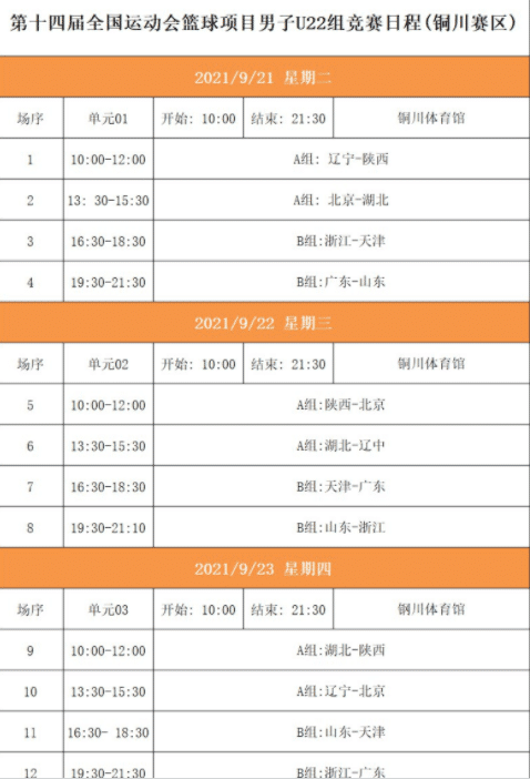 辽宁男篮全运会的赛程,从21日开始,一天一赛,先后对阵陕西、湖北和北京,前两名晋级到半决赛;休战一天,25日半决赛,26日决赛,也期待接下来辽宁男篮的表现。