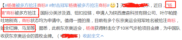 然而,这样的行为愈演愈烈,还有类似的行为发生。据悉,射击冠军杨倩的名字,也同样被注册成商标。杨倩在今年东京奥运会上,为中国代表团夺得首金,而她还是来自于清华大学的学霸,成为众人心中的骄傲,以及年轻人学习的榜样。