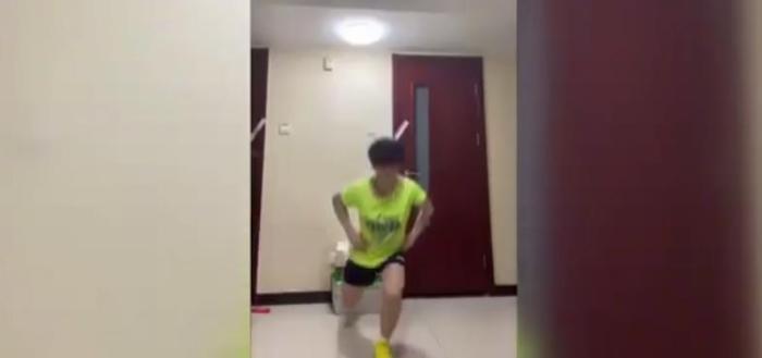 国乒“段子手”许昕在社交平台上上传了一段自己单脚下蹲摸瓶子的训练视频,许昕配文道:大家不用监督我,我没有偷懒。显然,这个段子手是想“回击”调侃他隔离期生活的球迷。