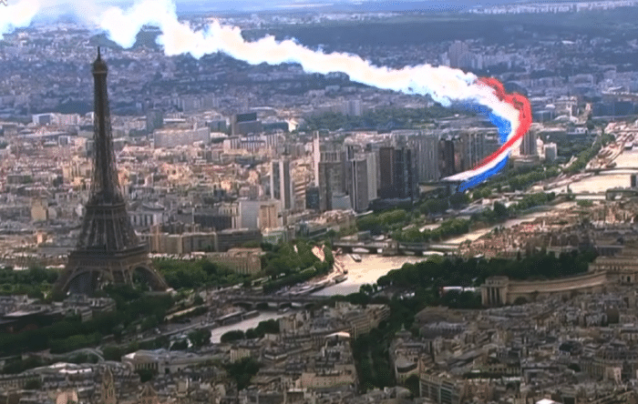 最早的国歌演奏环节,法国人就用音乐会的形式演奏高昂的《马赛曲》,而最后的一幕更是高端,法国宇航员在太空用萨克斯吹响国歌的最后部分。之后镜头一转,来到空中俯瞰整个巴黎。埃菲尔铁纳,塞纳河,卢浮宫,巴黎圣母院,香榭丽舍大街,展示在世人面前。