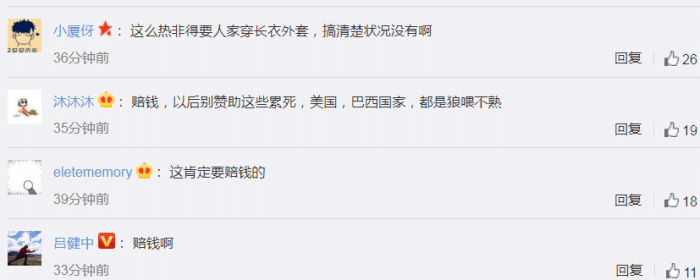 很多中国网友也纷纷不满,在社媒上表示,“违约了,赔钱吧”,“赔钱,以后别赞助这些运动员,喂不熟”,“是不是天气有点热,所以绑在腰上了呢”,“肯定违约了,不应该这么做”。