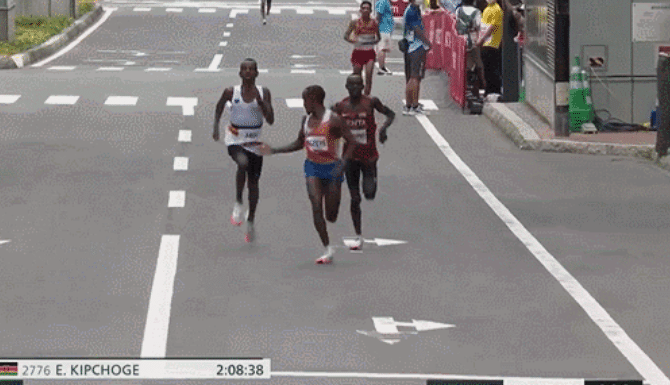 这场比赛对于金牌的争夺悬念并不大,基普乔格实力绝对碾压,夺冠问题并不大,最重要的是争夺第二名,这也上演了神奇的一幕,那就是荷兰选手纳吉耶和比利时选手阿巴迪联手,两位欧洲人直接将基普乔格的同胞挤出了前三的颁奖台。