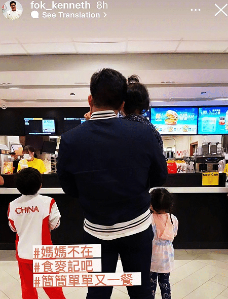 当然还有郭晶晶的爱人霍启刚,郭晶晶刚到东京不久,霍启刚就带着几个孩子去吃了汉堡、薯条这样的快餐。随后霍启刚“慌了”,他直言自己不是经常带着孩子们去,只是偶尔。