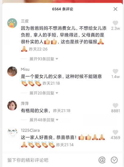 有人说,全爸爸不想“消费”女儿,毕竟“拿人手短”啊。有人说,全爸爸是个“格局”的人。