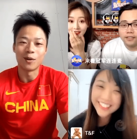 苏炳添的妻子是在直播到一半的时候,突然来到直播间。苏炳添看到妻子,立刻就露出了略带羞涩的笑容。而苏炳添妻子也和他相视一笑,场面令人羡慕。苏炳添妻子随后透露,两人从初一就认识,现在已经19年了。随后主持人问两人,怎么样注意到对方的。