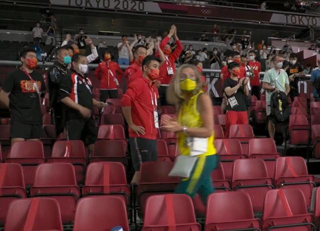 值得一提的是,本场比赛看台上的国乒冠军助威团混入一位外国姑娘,一身黄色的衣服格外显眼,现场的直播镜头也是多次给了这位姑娘,可以看出这位妹子穿的是澳大利亚国家队队服,因此这妹子极有可能是澳大利亚乒乓球队的,她一直认真观看比赛,直至结束,当离开时她不断地给获得金牌的中国队鼓掌,而且是一边走一边一路地鼓掌,从这举动可以看得出,他是发自内心的鼓掌,并不是客套的鼓掌。