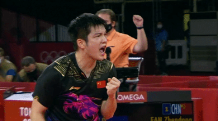 决胜局,樊振东以7-1开局,其中还不乏有神仙球,樊振东坐拥7个赛点的情况下稳住局面,以11-3强势拿下,总分3-2获胜。