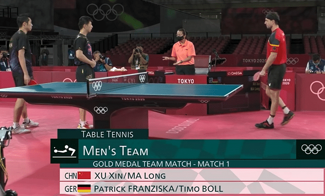 24直播网讯 8月6日,奥运会乒乓球男子团体金牌赛开始了争夺,中国队对阵德国队,这场比赛也是本届东京奥运会乒乓球的谢幕之战,所以外界的关注度是非常高的。中国队在半决赛中淘汰韩国队,而德国队则是险胜日本队晋级到决赛的。中国队名单:马龙、樊振东、许昕;德国队名单:波尔、奥恰洛夫、弗朗西斯卡;第一场比赛是男双,马龙联合许昕对阵波尔和弗朗西斯卡,马龙和许昕在首局一度被轰6-1,他们强势爆发,以3-0为中国队拿下开门红。