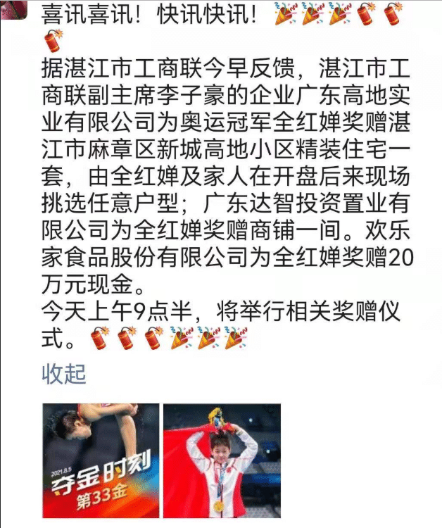 你的位置: 24直播网 综合直播 奥运会 家乡企业重奖14岁全红婵!房子+商铺+20万,游乐园也安排了