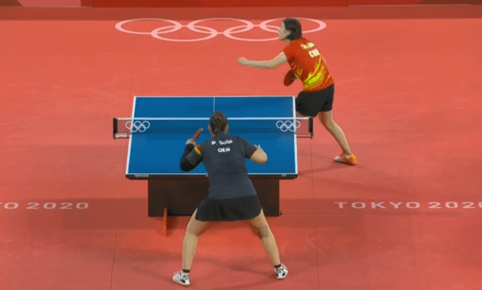 第三局的比赛陈梦对阵索尔佳,首局的比赛开始后,索尔佳进入状态更快一些,她一度取得了6:1的领先,这一局的比赛陈梦的状态并不是很好,开局慢热,索尔佳11-5战胜陈梦拿下第一局,第二局的比赛陈梦状态回暖,11:4扳回一局,第三局的比赛两人打成了9:9平,陈梦反手大角度扣球得分,陈梦扣杀再得分,11:9,陈梦拿下第三局,第四局的比赛陈梦顶住拿下,3:1,最终全场比赛结束,中国队3:0战胜德国队晋级决赛。