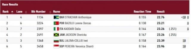 作为牙买加的短跑名将,谢瑞卡前几天在刚结束的100米决赛中夺得铜牌,6月她还曾跑出21.82秒,可以说她本来是很有实力争取200米冠军的。
