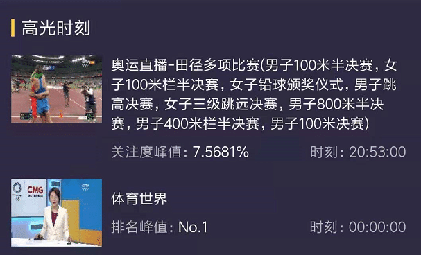 果不其然,高关注度下带来的是收视率的暴增,根据数据显示,苏炳添出战奥运会百米飞人大战,巅峰收视率突破7.5,这是超越开幕式(收视率破5)、女排首秀、中国女排VS美国女排、奥运会首金的收视率,堪称是举国瞩目。