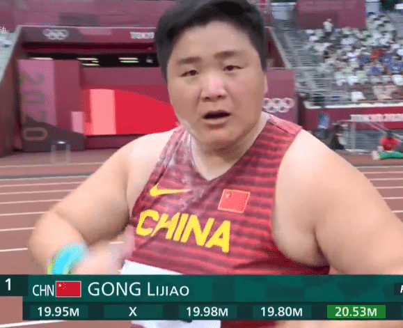 第四投,巩立姣依然是19米以上的稳定成绩,19米8。第五投,巩立姣终于打破了20米的大关,她这一投的成绩是20米53,个人历史最佳成绩,不给对手任何机会,这就是她的实力,她也是对着镜头大喊:中国运动员,牛!这也是一个非常棒的成绩,拿到了冠军