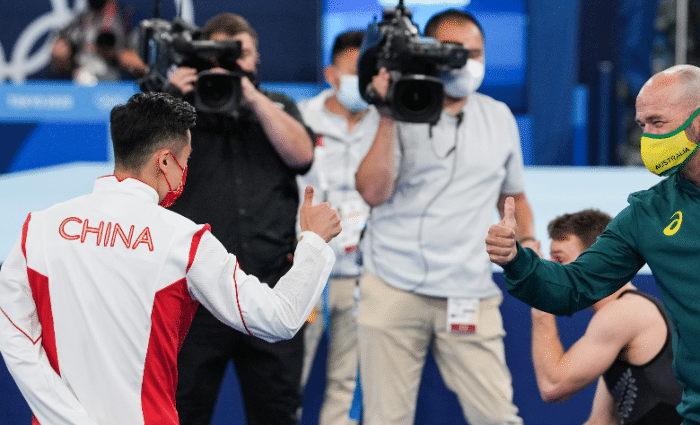 24直播网讯 北京时间7月31日,在男子蹦床决赛中,中国名将董栋在完美发挥的情况下遗憾摘银,金牌获得者是白俄罗斯选手,不过白俄罗斯选手在决赛的发挥并不算理想,一度差点蹦出蹦床外,因此很多观众非常不解,为什么他的最终得分会高于董栋