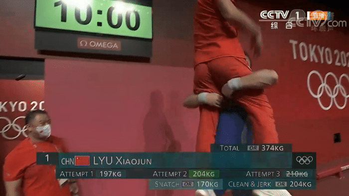 24直播网讯 北京时间7月31日,37岁的军神演绎不老传奇,抓举170公斤、挺举204公斤,总成绩374公斤,三项成绩都打破奥运纪录,毫无悬念地夺得男子举重81公斤级金牌,成为奥运史上最年长的举重冠军,夺冠之后军神指着胸口的国旗疯狂庆祝,之后又抱起教练再次庆祝。