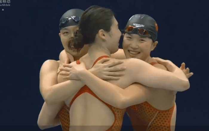 比赛开始后,第一棒的杨浚瑄出发反应时间0.65,她取得了第1的领先,100米的还是保持第1,冲到200的时候,杨浚瑄仍保持了第一的位置 ,第二棒是汤慕涵,澳大利亚队第二棒是名将麦基翁,麦基翁反超汤慕涵升到第一,汤慕涵保持第二,冲击阶段汤慕涵超越麦基翁夺回第一,第三棒张雨霏,澳大利亚是威尔森,澳大利亚反超升到第1,两人差距不大,张雨霏冲刺反超升超升至第1,最后一棒李冰洁出发,700米的时候,李冰洁保持着第1,最终成绩中国队获得金牌,7分40秒33破世界纪录。