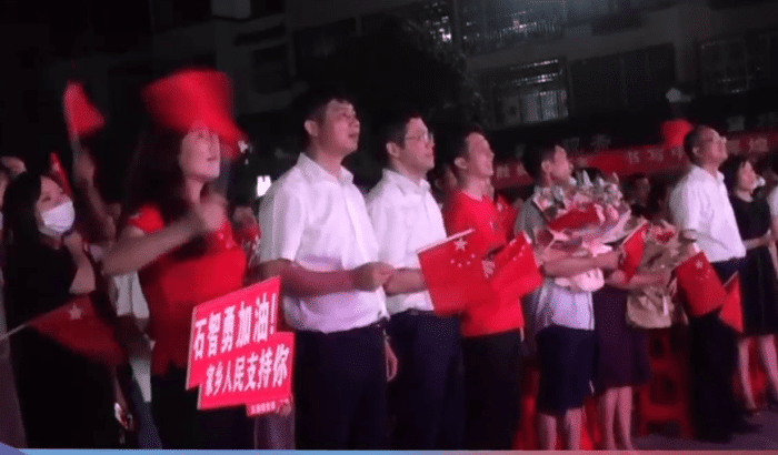 而此时,在石智勇的老家广西壮族自治区桂林市临桂区五通镇,全村的几乎所有村民,都已经围到了露天广场。在临时搭建的露天大屏幕前,所有人都屏气凝神,等待冠军的产生。