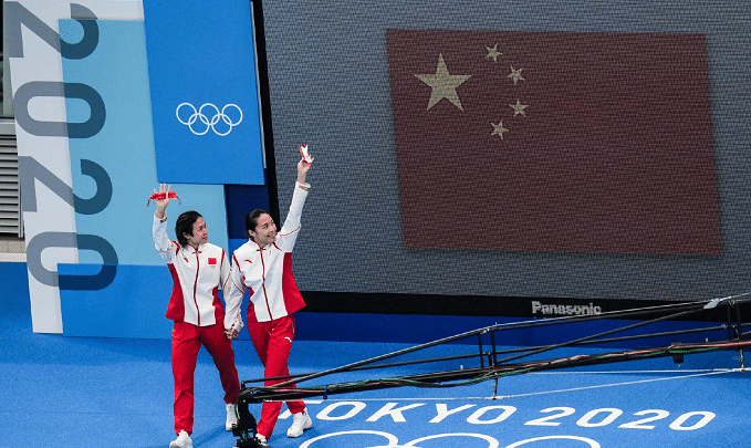 24直播网讯 7月25日,东京奥运会的跳水首金出炉,中国队的王牌组合施廷懋和王涵从第一跳就处于第一名,之后一直稳居榜首,最终她们以5跳总分326.40分完美夺冠。施廷懋卫冕成功,个人生涯第3枚奥运会金牌,王涵拿下个人奥运会首金。这也是中国队在本届奥运会的第4枚金牌,恭喜施廷懋和王涵。