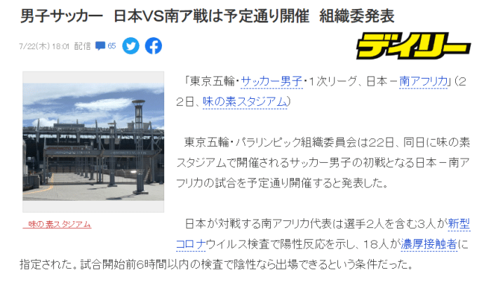 24直播网讯 北京时间7月22日,东京奥组委官方宣布,南非男足与日本男足的比赛,将会如期进行。此前4天,南非有2名球员检测呈阳性,一共21人遭到隔离。按照计划,这场比赛将在当地时间22日晚8点进行!毫无疑问,日本男足参加这场比赛,冒着巨大的风险。