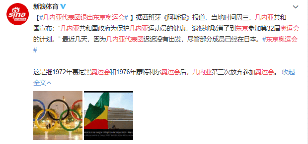 据西班牙《阿斯报》报道,当地时间周三,几内亚共和国宣布:几内亚共和国政府为保护几内亚运动员的健康,遗憾地取消了到东京参加第32届奥运会的计划。