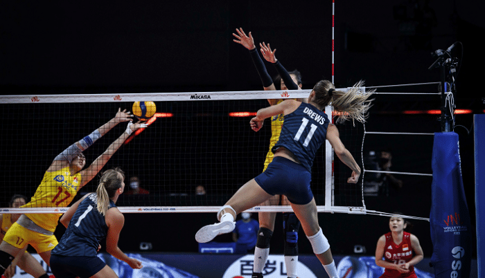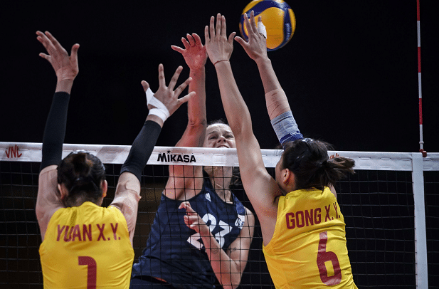 美国女排首发:主攻:巴奇、罗宾逊;副攻:阿金拉德沃、塔普;接应:德鲁斯;二传:汉考克;自由人:希尔;