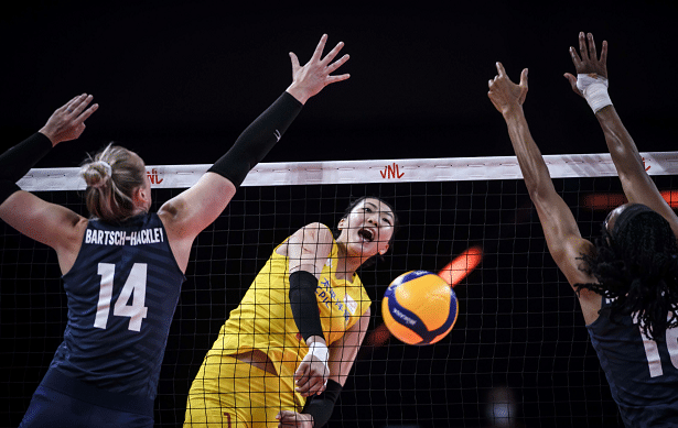 24直播网讯 北京时间6月20日,世界女排联赛循环赛最后一轮,中国女排以3-0完胜美国队,打破对手在本届比赛14连胜的不败金身,这样中国女排以7连胜收官,战绩是10胜5负,无缘前四名参加的总决赛。这场比赛中国女排全主力出战,美国队有多名替补,郎平再胜基拉里。三局比分:25-10、25-20和25-16;