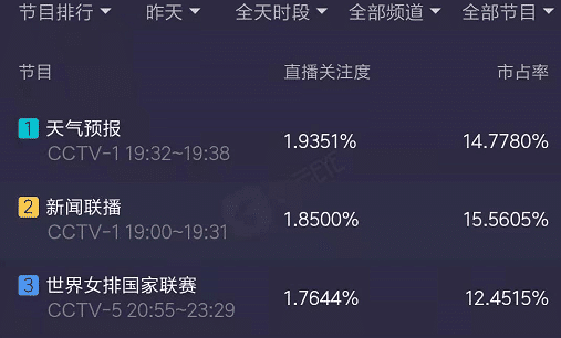 昨天晚上中国女排3-1击败多米尼加的比赛可以说是万众瞩目,从收视率的统计显示,中国女排的比赛收视率突破1.7,全天下来仅仅比新闻联播和天气预报的收视率稍微低一点,比同时间开始的两大欧洲杯豪强克罗地亚和英格兰队的比赛收视率要高出很多, 不得不说现在国内体育的顶流是中国女排,也很多家庭都是全家人一起收看女排的比赛,而中国女排也表现很出色,拿下3连胜。