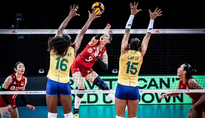 24直播网讯 今天中国女排打出了本届世界联赛最佳的表现,她们以3-2逆转击败排名第三的巴西队。不同于0-2落后还让对手有4个赛点,逆转击败德国队,这次中国女排遇到的是世界联赛12冠王的巴西队,实打实的主力出战,拥有加比等人。在赛前被看衰会吃到5连败,比赛期间在先输一局的情况下,中国女排在张常宁的带领下一度2-1反超,通过决胜局的表现,以总分3-2逆转击败巴西队,张常宁轰下36分,个人世界大赛的第二高分,也是本届世界女排联赛的个人单场第二高分,恭喜张常宁。